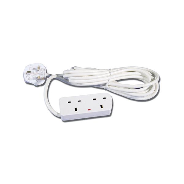 White 13Amp, twin socket extension lead. Length 5 metres.