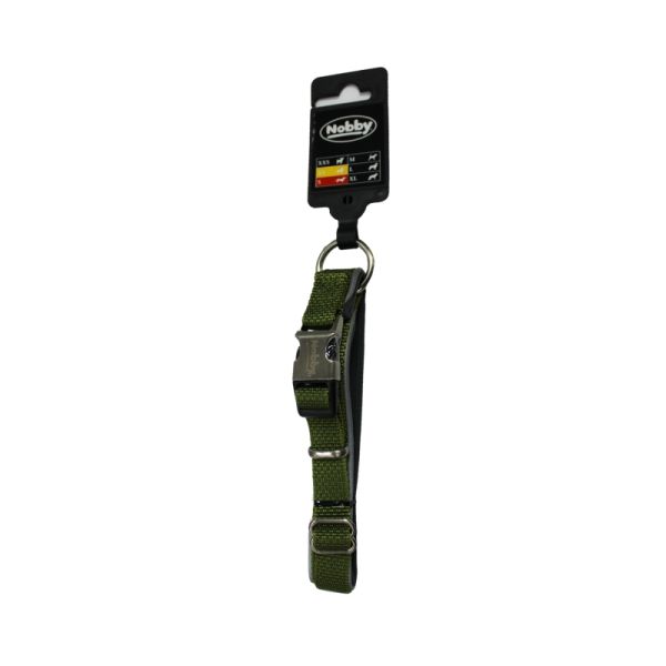 The Nobby dog collar in green is designed for extra small and small dogs, providing a comfortable and secure fit. It is often made with soft, breathable materials like neoprene for added comfort and may come in various sizes to ensure a perfect fit for your pet.